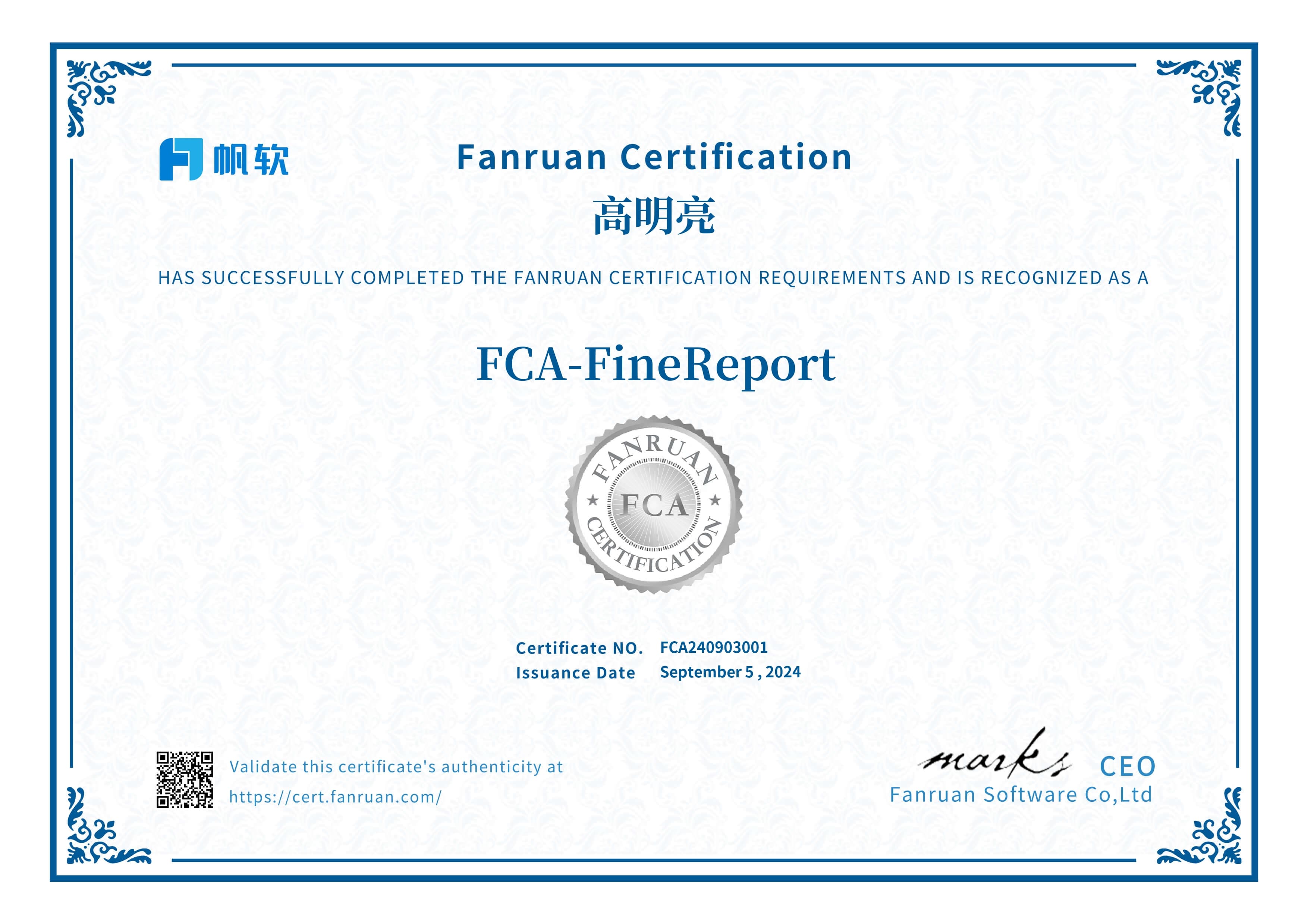 记录一下软件认证的FAC证书,官网地址:https://cert.fanruan.com