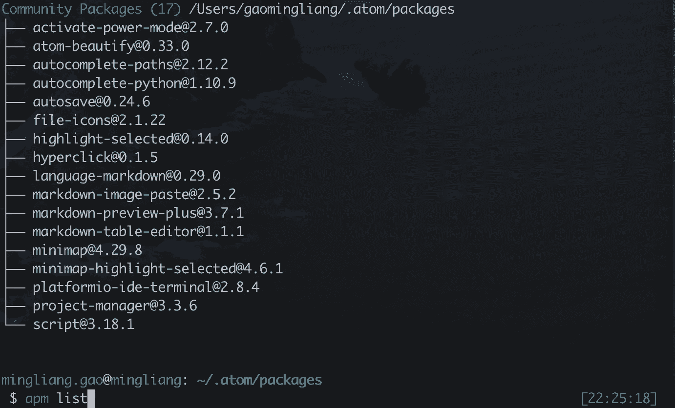 2.cd到插件的目录,执行apm install命令进行插件的安装