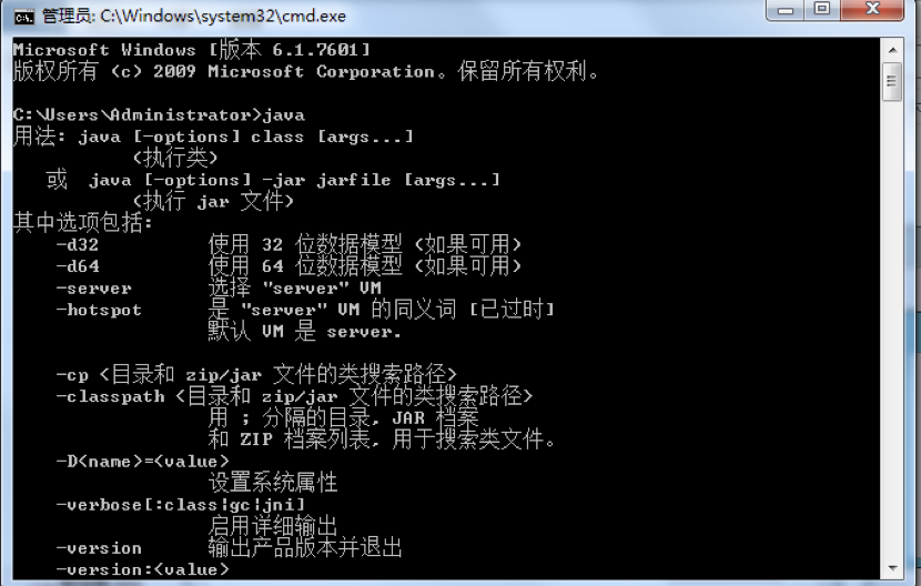 打开cmd窗口(win+R),输入java,如果是以下提示安装成功,否则就是环境变量配置问题。