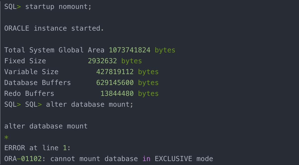 记录一次Oracle数据库挂载mount数据库失败的经历,过程中除了多次问题,在错误中寻找解决方案。