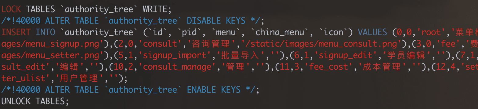 在数据insert插入增加LOCK TABLES,插入后UNLOCK TABLE,默认为打开状态,使用–skip-add-locks可取消,为了数据实时与安全,不建议取消。