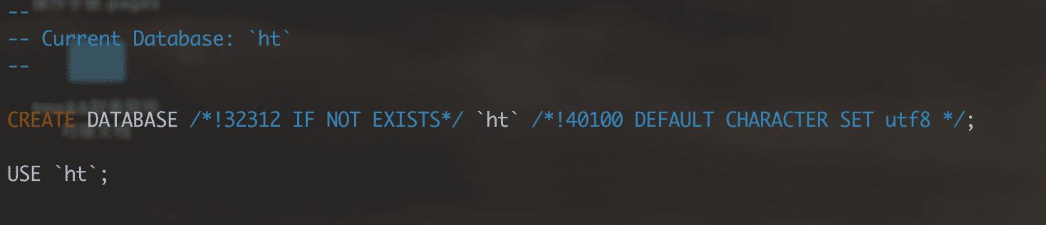 这样导出的数据无CREARE DARABASE语句,需要提前在新的数据库提前创建好数据库,在mysql恢复的时候指定数据库。