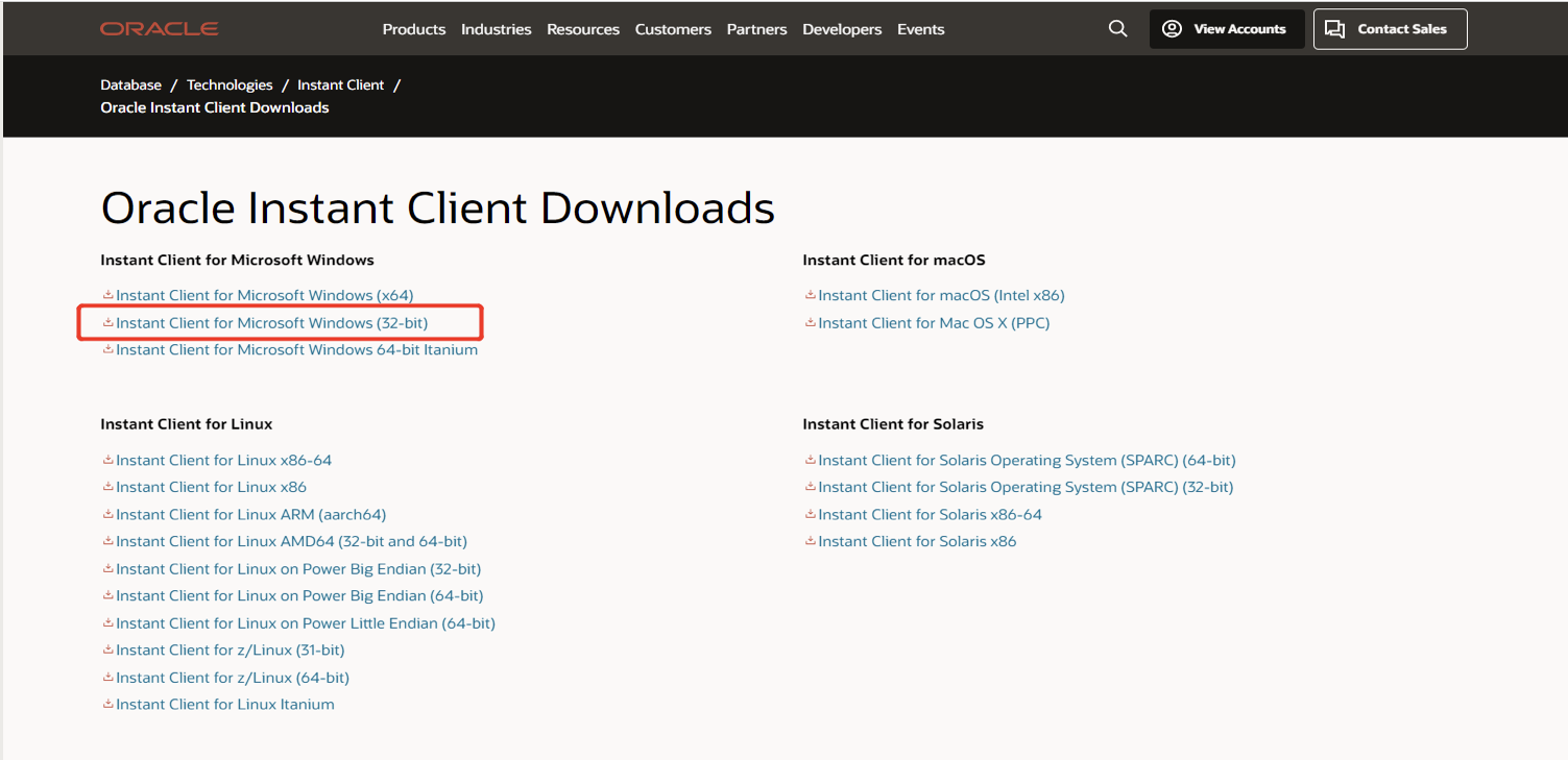 https://www.oracle.com/database/technologies/instant-client/downloads.html