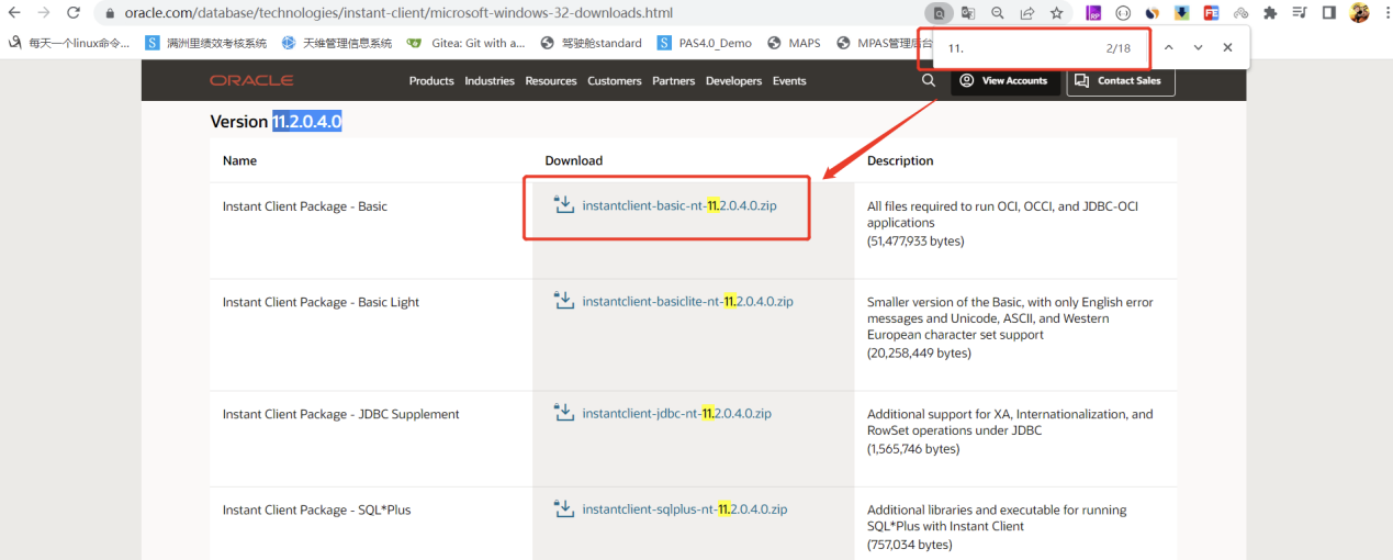 2、下载Oracle instantclient包,打开Oracle官网Instant下载地址: