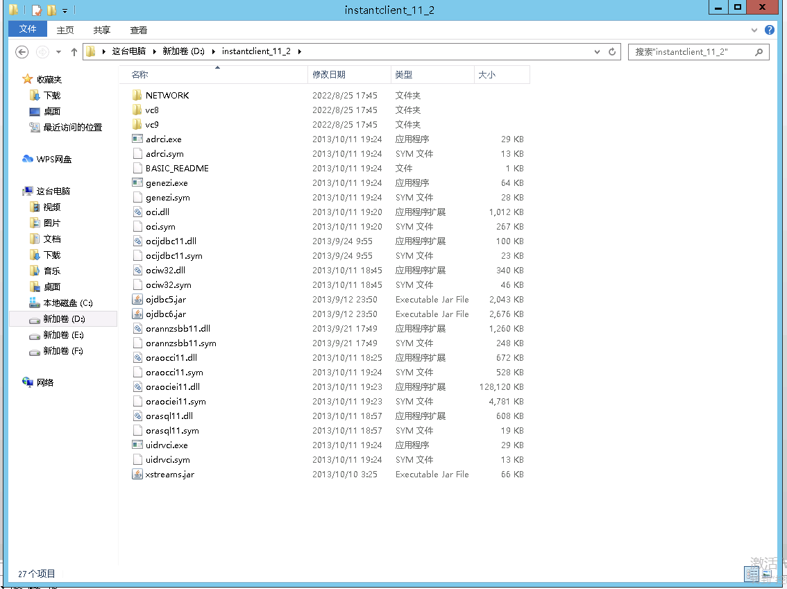 1、解压文件:instantclient-basic-nt-11.2.0.4.0.zip