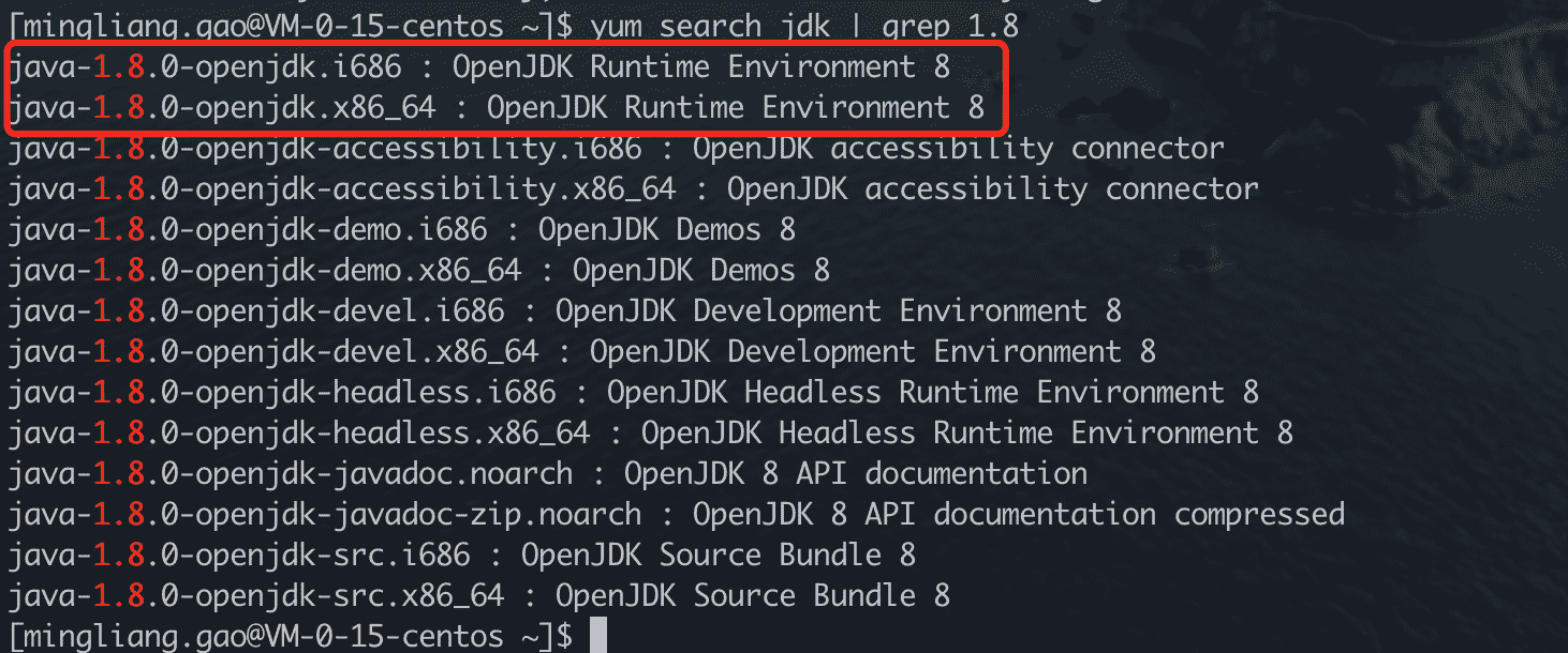 yum install java-1.8.0-openjdk.x86_64安装完是下面这个样子: