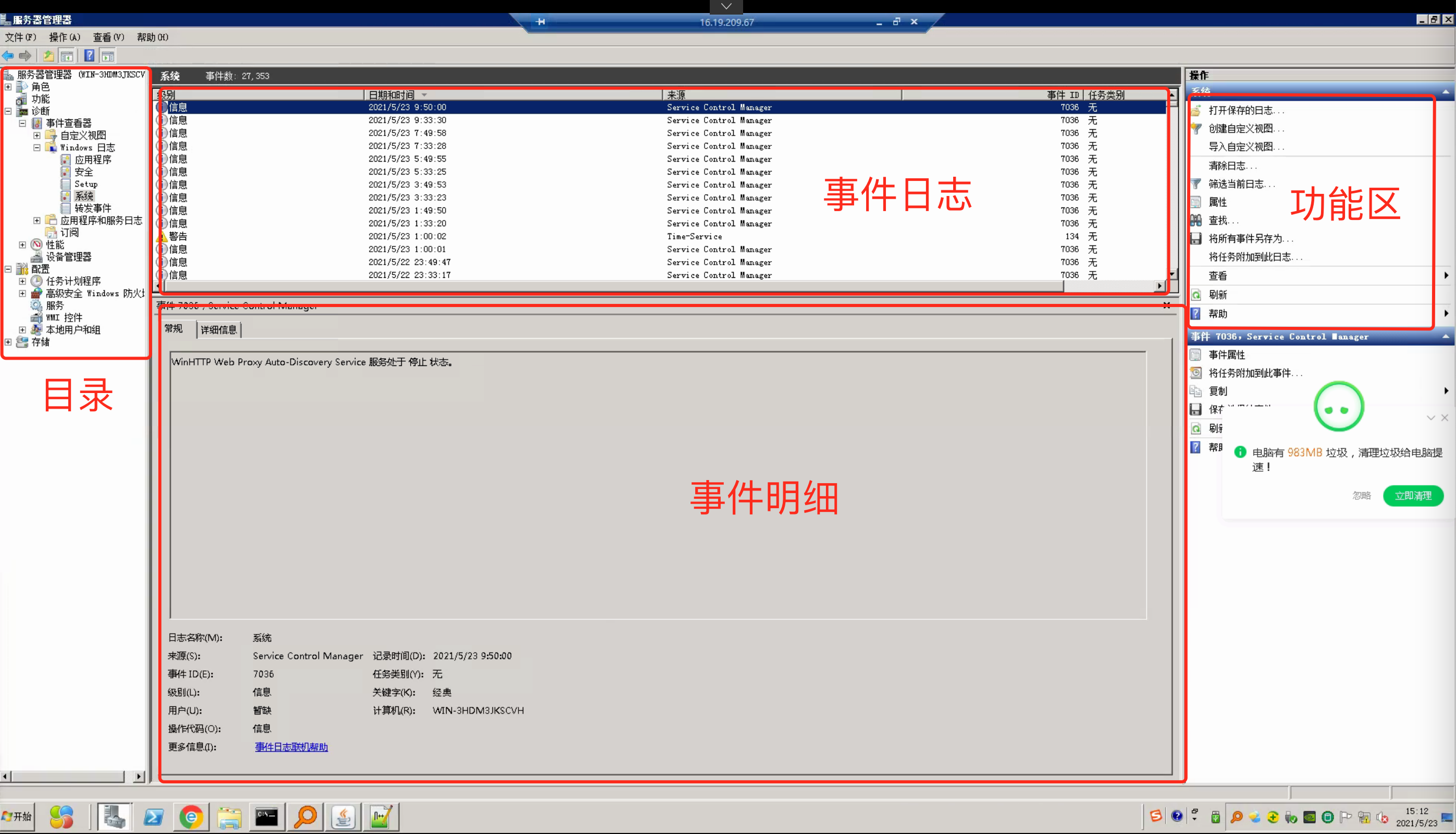 查看系统的日志记录,查询服务器发生了哪些明细,所在位置: