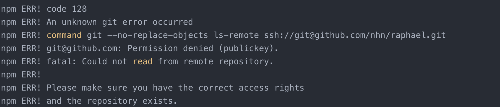看了下错误,发现是raphael.git项目git不下来,baidu了一下控制台进行git设置: